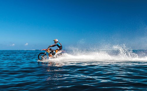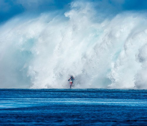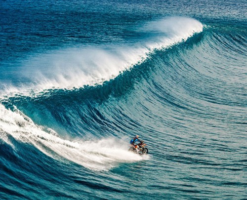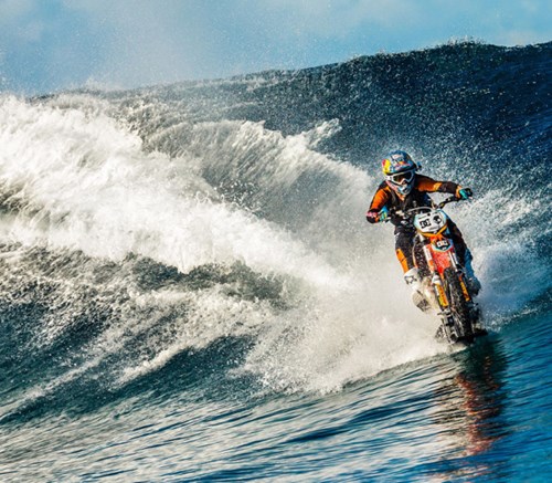 Robbie Maddison, một biker và diễn viên đóng thế đã dành hai năm luyện tập trước khi thực hiện màn biểu diễn dùng chiếc mô tô vượt qua hàng loạt các con sóng lớn tại Tahiti.