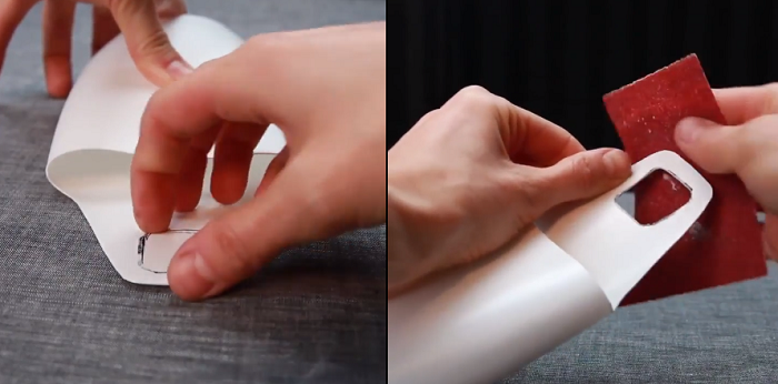 Nếu muốn cho những đường rọc mượt mà hơn, bạn dùng giấy nhám chà để nhẵn hơn. Tất nhiên, chỉ cần cắt đơn giản như vậy thôi thì bạn cũng đã có một chiếc giá đỡ “nguyên thủy” từ cái chai. Nhưng nếu bạn muốn đẹp hơn thì bạn có thể trang trí theo cách của mình.
