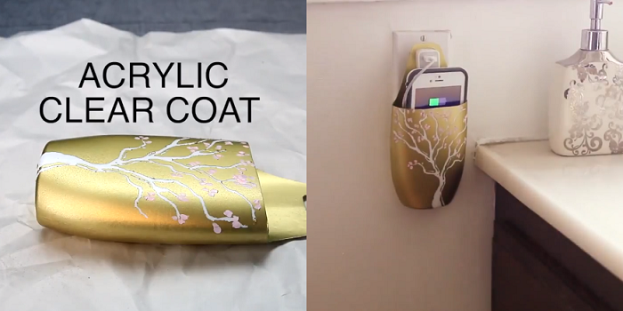 Cách trang trí đơn giản nhất, bạn dùng loại sơn xịt tùy màu bạn chọn để xịt thẳng vào, chờ chúng khô và sau đó tạo kiểu. Thế là xong rồi đấy, giờ bạn chỉ có việc cho điện thoại vào và cắm sạc thoải mái thôi nào!