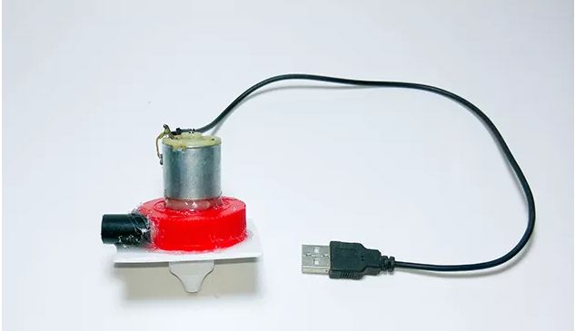 Các bạn nối 2 dây đỏ đen của dây USB ( Có 2 dây, thường dây nguồn là dây có màu đỏ và đen) vào 2 cực của mô tơ. Vậy là chúng ta đã làm xong chiếc máy bơm nước mini