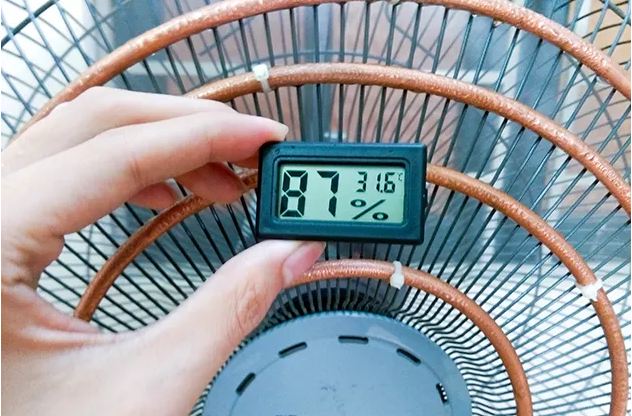 Khoảng 5 phút sau nhiệt độ gió thổi ra từ quạt đã giảm xuống được gần 5 độ C và độ ẩm tăng lên 87%