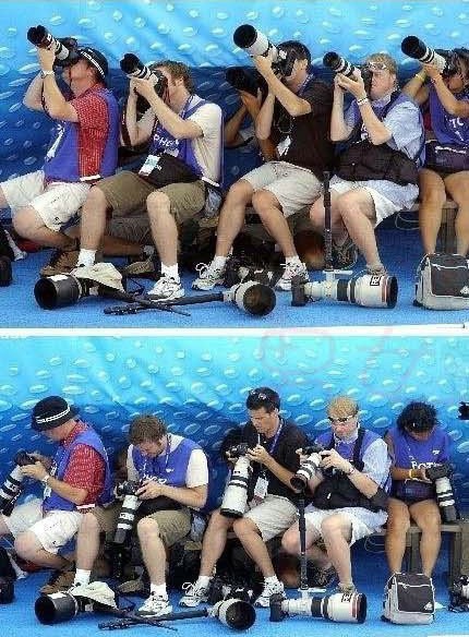 Các nhiếp ảnh gia đồng loạt đưa ống quay lên cao để ghi lại khoảnh khắc có một không hai và sau đó đồng loạt hạ máy ảnh xuống để ngắm thành quả.