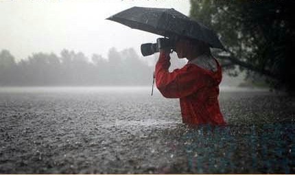 Cơn mưa rơi xối xả không thể ngăn tay săn ảnh tác nghiệp.