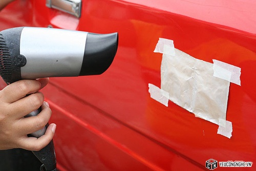 Xác định vị trí vết lõm như ở thân, trên mui, cánh cửa ra vào, trên nắp ca-pô, chắn bùn. Sử dụng máy sấy tóc chỉ với những vết lõm nông không nếp nhăn , không bị bong sơn và có bề mặt diện tích dưới 8 cm.