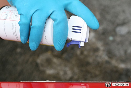 Hoặc nếu sử dụng bình khí nén, lắc nhẹ trước khi phun vào bề mặt miếng nhôm lá.