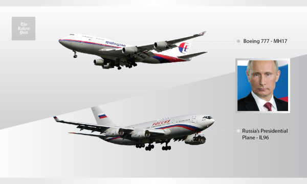 Máy bay của ông Putin (dưới) và MH17 na ná nhau.