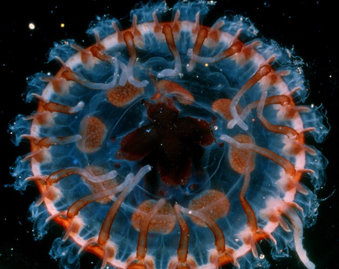 | Loài sứa Atolla sống ở lớp sâu dưới lòng đại dương. Chúng có 22 xúc tu, trong đó một xúc tu lớn hơn những xúc tu khác và dùng để bắt mồi. Điều đặc biệt ở loài sứa Atolla là chúng có khả năng phát quang. Khi bị tấn công, chúng sẽ phát ra ánh sáng để gây sự chú ý với kẻ thù. |