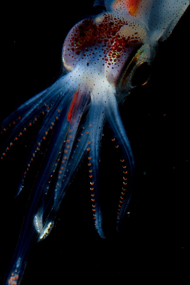| Mực Abraliopsis là loài phát quang kỳ lạ dưới đại dương. Chúng sống từ các vùng biển nhiệt đới đến vùng nước ấm tại Đại Tây Dương, trong đó có vịnh Mexico và Địa Trung Hải. Con đực trưởng thành dài khoảng 25-27 mm, con cái dài hơn: 32-33 mm. Loài mực này có một bộ phận phát sáng ở bụng dưới, có chức năng giúp chúng ngụy trang trước kẻ thù. Khi kẻ thù muốn tấn công chúng từ phía dưới, cơ thể chúng phát sáng rất giống hình bầu trời khiến và khó bị phát hiện. |