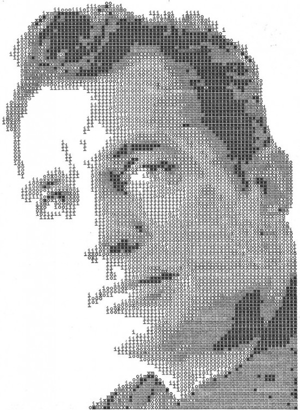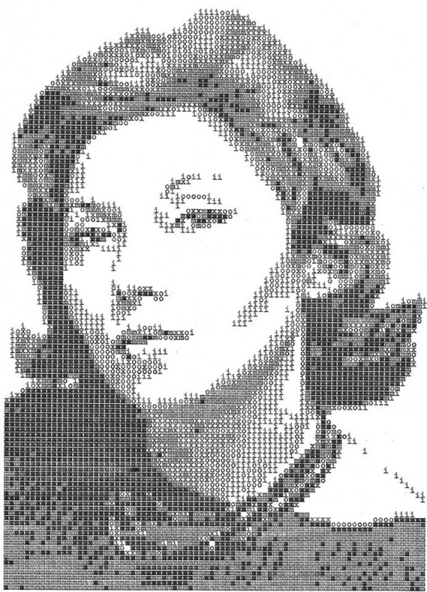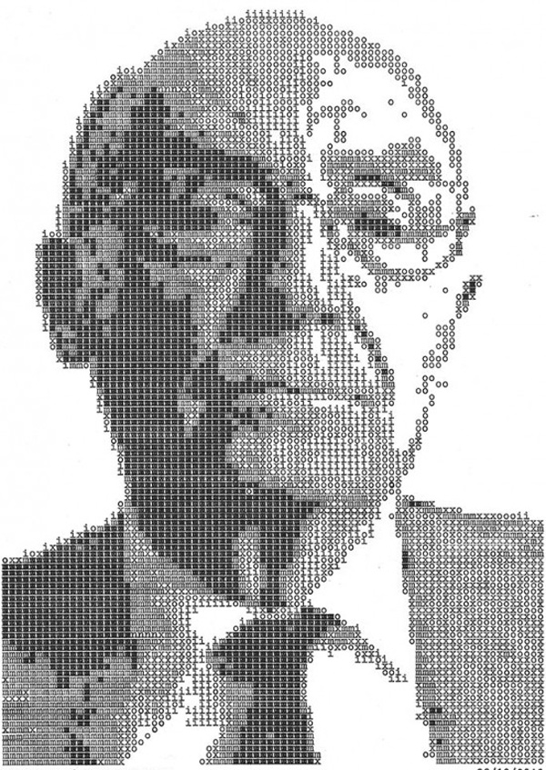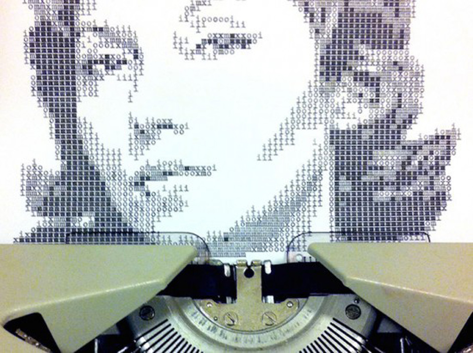 Nghệ sĩ thiết kế Álvaro Franca đã lựa chọn phương thức vẽ tranh chân dung bằng máy đánh chữ cổ chỉ với ba ký tự “m”, “i” và “o” để tạo ra các bức chân dung siêu đẹp.