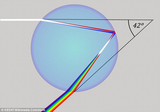 Khi ánh sáng Mặt trời đi qua các giọt nước, tia sáng bị bẻ cong, phản xạ lại và đi ra ngoài giọt nước theo một góc 42 độ. Đó là lí do vì sao chúng ta chỉ có thể nhìn thấy cầu vồng khi quay lưng lại với Mặt trời và nhìn theo một góc 42 độ so với ánh sáng Mặt trời.