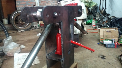 Việc đặt mua bộ khung chính hãng có chi phí cao nên để làm ra bộ khung xe độc này, tác giả đã phải tự mày mò tìm hiểu, rồi chế tạo ra chiếc máy uốn khung.