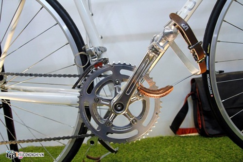 Chiếc xe đạp hiệu Peugeot của Pháp có giá 73 triệu đồng, tương đương một chiếc Honda SH sản xuất tại Việt Nam. Nhiều chi tiết được gia công tỉ mỉ và bọc da thật.