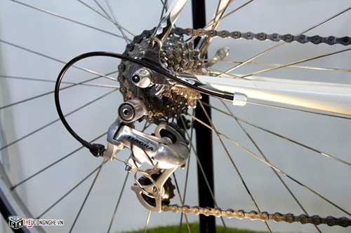 | Cụm phanh sau hiệu Shimano Tiagra. Xe được trang bị lốp Hutchinson Equinox PV69802 kích thước 700x23. |