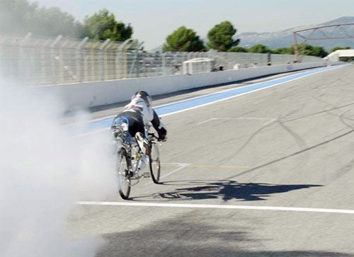 Trong lần thiết lập kỷ lục mới tại đường đua Le Catallet ở Pháp, chiếc xe đạp tên lửa của Gissy đã bỏ xa siêu xe Ferrari F430 chỉ sau vài giây xuất phát.