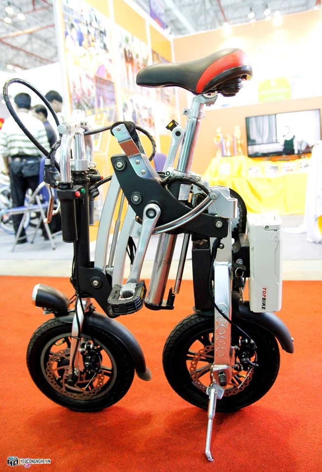 Tuy nhiên khi gập gọn, kích thước chỉ còn 500 x 250 x 700 (mm). Thao tác gấp gọn xe vô cùng đơn giản. Đầu tiên, bạn bóp chốt để hạ thấp độ cao của yên, kéo tay nắm ở khung xe để xe gập gọn lại. Sau đó rút hai chốt trên tay lái để gập tay lái xuống, và cuối cùng là gấp bàn đạp vào trong.
