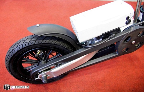 Hệ thống truyền lực trên xe sử dụng moay ơ truyền động kép, mô tơ điện công suất 200W.