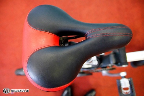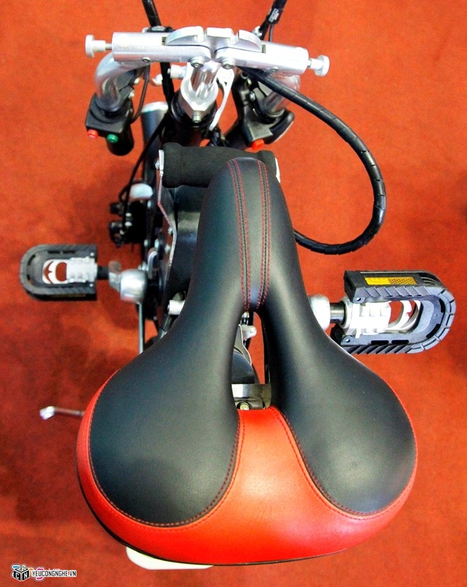 Yên xe được thiết kế khá thời trang với những đường chỉ đỏ nổi bật và da hai tông màu.
