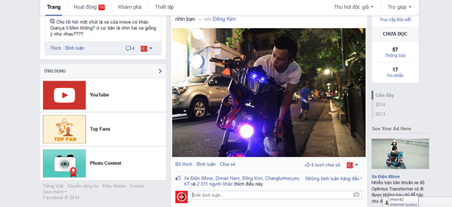 Hình ảnh một bạn trẻ đi chiếc xe điện độ ra đường thu hút được hàng nghìn lượt quan tâm, chia sẻ và bình luận trên Facebook Xe điện iMove.