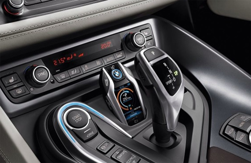 BMW i8 trang bị vô số công nghệ, cùng một chiếc chìa khóa thông minh với ngoại hình cũng như tính năng không giống phần lớn chìa khóa ôtô khác. Chìa khóa của i8 gồm một màn hình với độ phân giải cao hiển thị đa dạng thông tin hữu ích như mức sạc, thời gian sạc và khoảng cách xe có thể chạy trước khi cần sạc lại.
