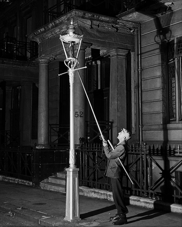 Trước khi đèn điện được phát minh, người ta phải tự tay thắp đèn đường mỗi ngày. Những người làm việc này sử dụng một chiếc gậy lớn để thắp đèn, tiếp nhiên liệu hoặc dập tắt lửa tại các cột đèn đường khi trời sáng.