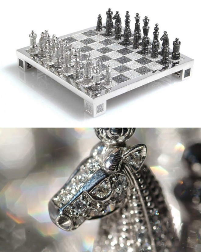 Trị giá 600.000 USD, đây là bộ cờ xa xỉ và đắt nhất thế giới. Hãng trang sức Charles Hollander đã làm 7 bộ cờ Kim cương Hoàng gia với sự giúp đỡ của nhà thiết kế Bernard Maquin. Theo trang Businessweek.com, bộ cờ được đính 320 carat kim cương đen và trắng cùng 2kg vàng trắng 14 carat. 30 thợ thủ công đã dành hơn 4.500 giờ để làm bộ cờ này.