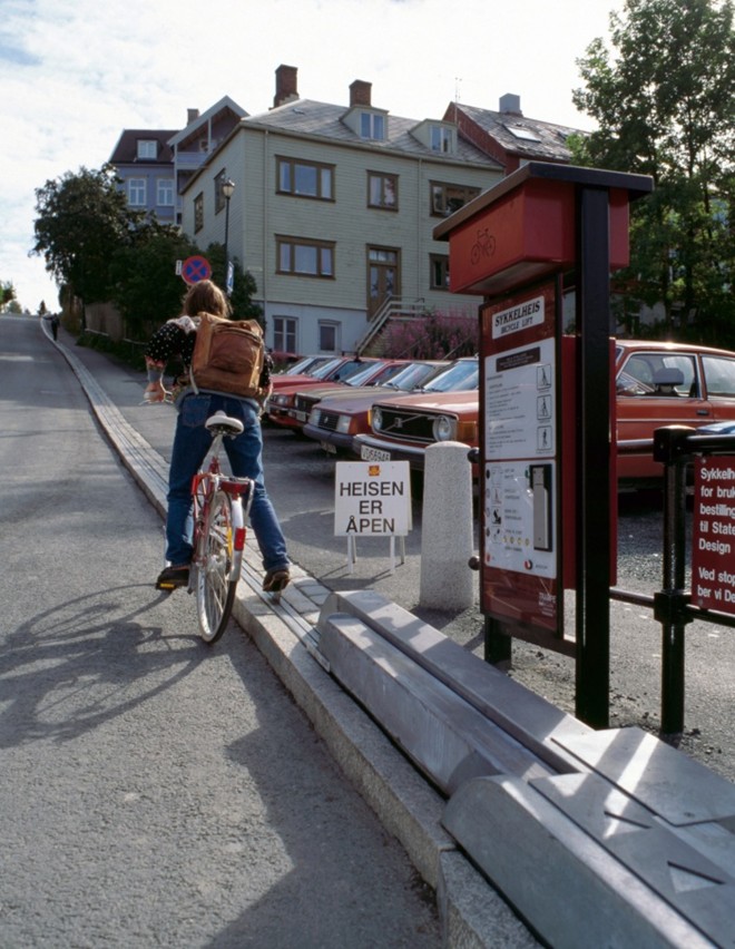 Thang máy dành riêng cho người đi xe đạp ở Trondheim, Na Uy.