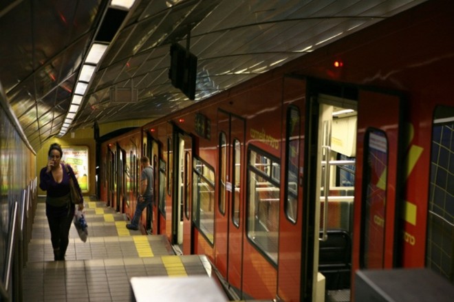 Một con tàu trên cao đi qua chợ đồ cũ ở Vohwinkel, Wuppertal, Đức.