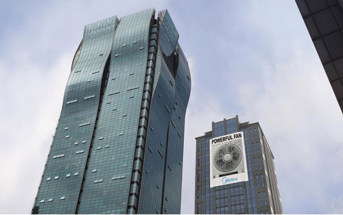 Tại Thượng Hải, hãng Media đã có một quảng cáo không thể độc đáo hơn khi kết hợp cùng tòa nhà Haitong Securities phía trước. Trông như chiếc quạt khổng lồ đang thổi các dải kính cửa sổ của tòa nhà bay phần phật.