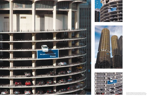 "Bạn có phải là một tay lái lụa?" Quảng cáo này được lắp đặt tại tòa nhà Marina City, Chicago năm 2008