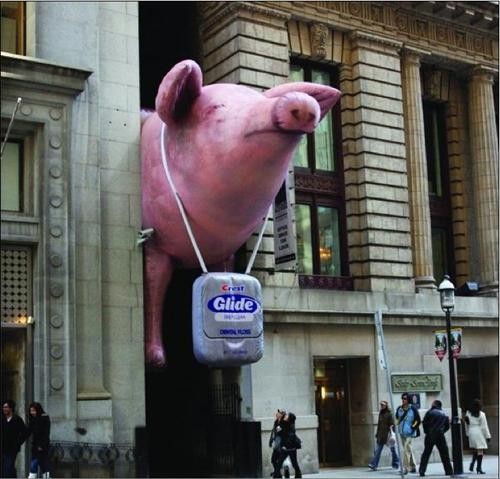 "Hãy lấy miếng thịt lợn đó ra khỏi hàm răng của bạn." - Quảng cáo rất thú vị trên đường phố New York năm 2008 của trung tâm nha khoa Crest Glide.