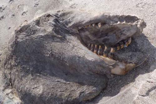 Người dân tại bờ biển Pukehina ở New Zealand tìm thấy xác một con vật thối rữa với răng và hàm có kích thước to dị thường hồi tháng 5. Hầu hết các bộ phận trên cơ thể con “quái vật biển” đã biến mất, còn trơ lại xương hàm và răng. Phần xác còn lại dài gần 10 m. Cái xác này được cho là dạt vào bờ trong cơn bão xảy ra ở khu vực này 1 tháng trước đó. Có nhiều dự đoán về con vật trên, có người cho rằng đó có thể là cá sấu nước mặn, con lươn khổng lồ, cá heo hoặc khủng long. Hình ảnh “quái vật” sau đó được gửi tới cơ quan bảo tồn New Zealand và phòng thủy sản Kelly Tarlton để xác minh. Theo Zing |