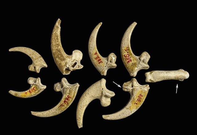 Những chiếc móng vuốt đại bàng này được lấy từ ít nhất 3 con chim riêng biệt mang nhiều vết cắt và được xâu chuỗi, đánh bóng. Các nhà nghiên cứu cho rằng đây là một phần của chiếc vòng cổ hoặc vòng đeo tay.