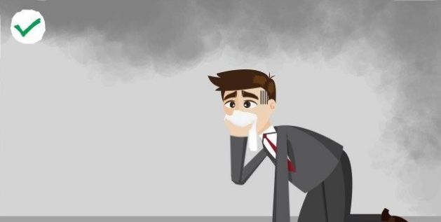 Phương pháp di chuyển cũng sẽ giúp bạn tránh khỏi nguy cơ bị nhiễm độc khói - đó là bò, trườn, hoặc cúi thấp. Đó là vì khói chỉ bốc lên trên, và mặt sàn chính là nơi ít khói nhất.