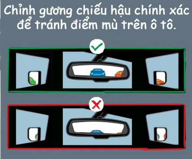 Điều chỉnh gương chiếu hậu trong xe một cách chính xác, đúng vị trí sẽ giúp bạn loại bỏ điểm mù phía sau xe bởi sẽ có 1 phần nhỏ vùng quan sát trùng giữa các gương.