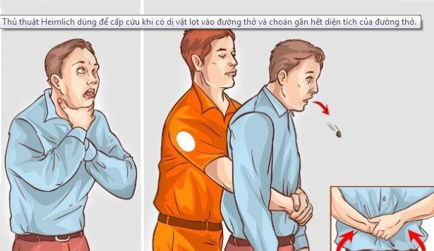 Để bệnh nhân đứng, người cúi ra trước, người cấp cứu đứng phía sau, hai tay ôm bụng sát phần trên xương ức.