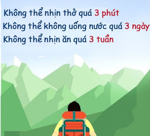 Đó là chúng ta không thể nhịn thở quá 3 phút, không thể không uống nước quá 3 ngày và không thể nhịn ăn quá 3 tuần.