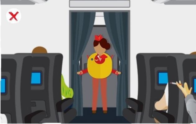 Áo phao được sử dụng trong trường hợp khẩn cấp khi máy bay hạ cánh xuống biển. Bạn không nên làm phồng áo phao khi còn ở trong máy bay mà hãy đợi đến khi tới cửa thoát hiểm nhanh tay giật mạnh thẻ đỏ hoặc thổi để áo phao phồng lên.