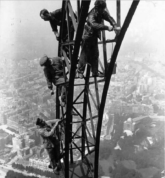 14. Những người thợ đang sơn lại tháp Eiffel, năm 1932.