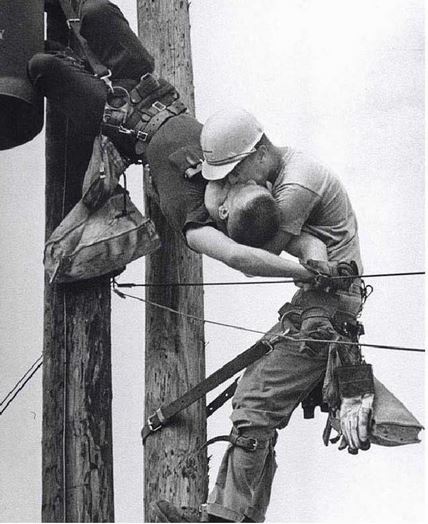 3. Năm 1967, sau khi trèo lên một cột điện cao thế, hai công nhân nam đã hôn nhau thắm thiết.