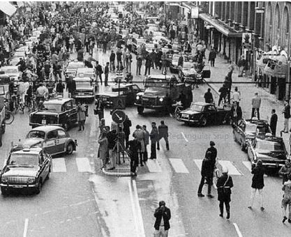 5. Thụy Điển chuyển quy định sang lái xe bên phải đường. Và đây là kết quả trong buổi sáng đầu tiên.