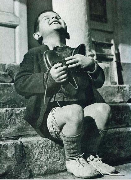 6. Cậu bé người Áo này vui sướng vì có một đôi giày mới trong Chiến tranh thế giới thứ hai.