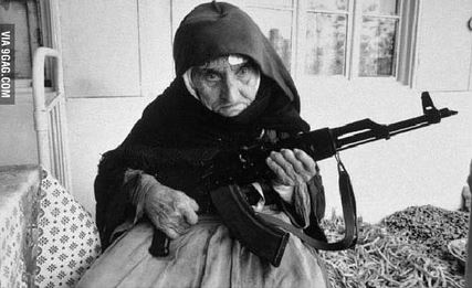 8. Một cụ già Armenian 106 tuổi cầm sung bảo vệ ngôi nhà của mình năm 1990.