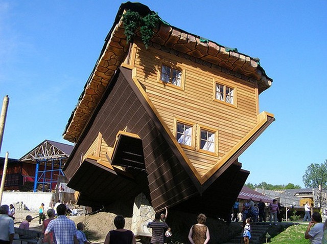 Được thiết kế bởi doanh nhân Daniel Czapiewski , tòa nhà lộn ngược ban đầu được xây làm triển lãm nghệ thuật, phản ánh phong cách của thời kỳ sau khi chủ nghĩa cộng sản sụp đổ.
