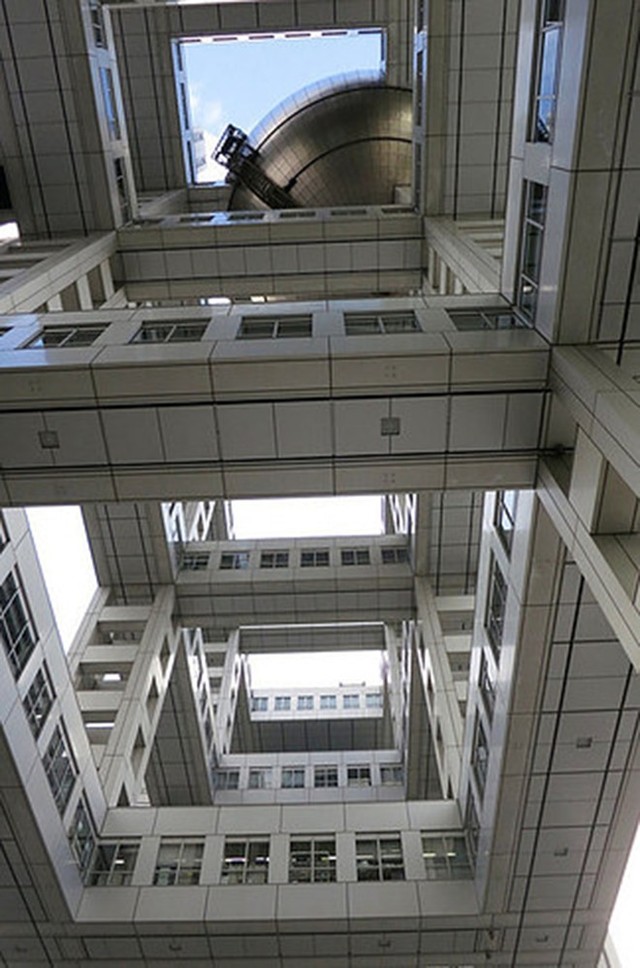 Có vẻ ngoài như được xây bằng các khối lego, tòa nhà đài truyền hình Fuji là thiết kế của công ty Kenzo Tange Associates.
