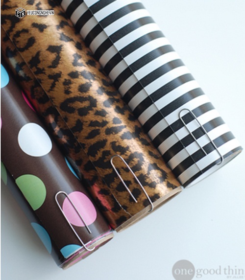 Kẹp vào mỗi cuộn giấy bọc thế này để nó khỏi tung ra ngoài.