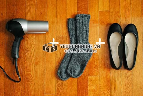 Đi một đôi tất dày sau đó xỏ chân vào giày đế bệt. Dùng máy sấy sấy những phần cứng, phần bị kích. Để đến khi giày nguội. Làm lại nếu cần nới rộng hơn.