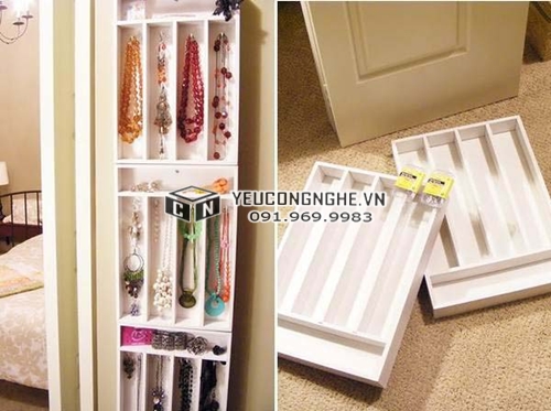 6. Biến những khay đựng dụng cụ thành khung treo/ khay đựng đồ trang sức
