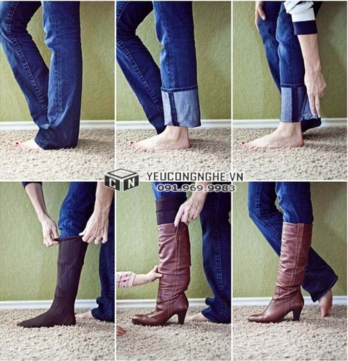 7. Đây là cách để cho quần jeans vào bốt thật gọn gàng