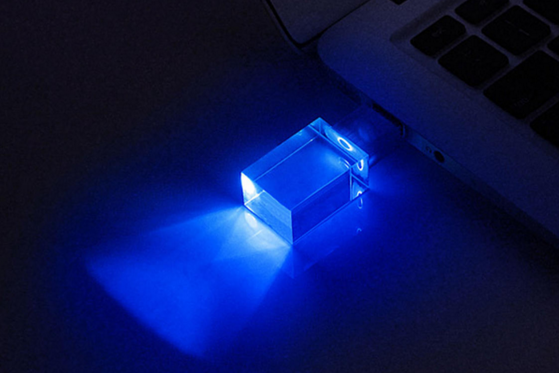 Chiếc USB này cũng có một thiết bị đèn tích hợp bên trong cùng ánh sáng xanh lạ mắt.