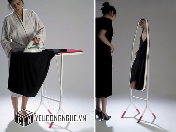 Cầu là, mặt dưới là gương, là quần áo rồi diện áo quần luôn
